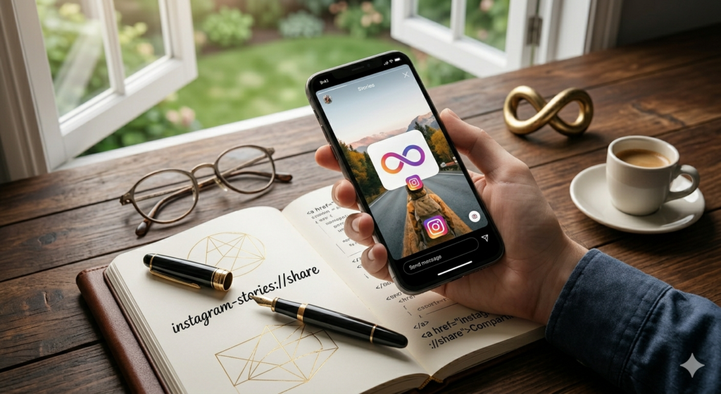Para crear un botón de «Compartir en Instagram Stories», necesitamos entender cómo funcionan los «enlaces profundos» (deep links). Un deep link es un tipo especial de URL que, en lugar de abrir una página web en un navegador, lanza directamente una aplicación específica en el dispositivo del usuario y lo lleva a una sección o contenido particular dentro de esa aplicación.